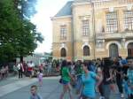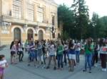 Tinerii artisti, membri ai trupelor de teatru si dans de la Asociatia Culturala ARLECHIN Botosani au sustinut un spectacol de productie muzical – coregrafica, care a reusit sa fie o frumoasa surpriza si un moment de relaxare pentru publicul spectator. Pentru realizarea acestui eveniment au fost relizate workshop-uri de dans atat la Casa Tineretului Botosani, cat si la Stadionul Municipal din Botosani, unde au participat 58 de tineri de la cercurile de dans si teatru. La aceast instantaneu cultural au fost prezenti, domnul deputat Catalin Buhaianu , domnul viceprimar Catalin Alexa si domnul consilier local Volin Costin, acestia au felicitat tinerii prezenti pentru frumoasa initiativa de a realiza acest flash mob si de a dansa in spatiul public, urandule succes in cariera lor artistica.