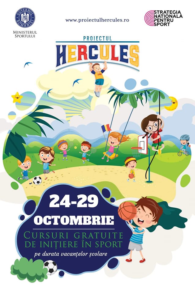 În perioada 24-29 octombrie, pe durata vacanței școlare, Ministerul Sportului va desfășura a II-a ediție a Proiectului ”HERCULES”, un program destinat atragerii copiilor către sport, care va oferi elevilor cu vârste între 6 și 15 ani 𝐜𝐮𝐫𝐬𝐮𝐫𝐢 𝐠𝐫𝐚𝐭𝐮𝐢𝐭𝐞 𝐝𝐞 𝐢𝐧𝐢𝐭̦𝐢𝐞𝐫𝐞 𝐢̂𝐧 𝐝𝐢𝐟𝐞𝐫𝐢𝐭𝐞 𝐝𝐢𝐬𝐜𝐢𝐩𝐥𝐢𝐧𝐞.