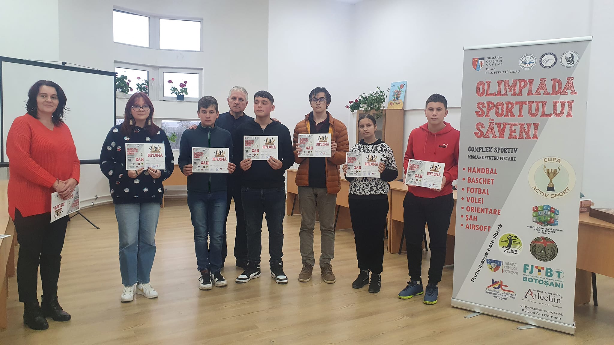 Comisia de arbitri formată din doamna profesor Diaconu Silvia, domnii Nistor Marius și Baltă Mihai, specialiști cu recunoaștere națională și internațională în domeniu, și a echipei tehnice formată din doamnele profesoare Drasleucă Mihaela, Chiorescu Cristina, Năpîrcă Felicia, au desemnat câștigătorii competiției de șah – Cupa ,,Activ Sport”, după cum urmează: Prremiu I, Elena Năpîrcă, de la Liceul Teoretic ,,Dr.Mihai Ciucă”, profesor Elena Bordeianu; Premiul II, Croitoru Dorin Gabriel, de la Liceul Tehnologic Coțușca – structura Crasnaleuca, profesor coordonator Scutelnicu Carmelușa; Premiul III, Mandachi Marius, de la Liceul Teoretic ,,Dr.Mihai Ciucă”, Săveni, profesor Elena Bordeianu; Mențiune, Dumitru Petru, de la Liceul Teoretic ,,Dr.Mihai Ciucă”, Săveni, profesor Elena Bordeianu; Mențiune, Cozmîncă Sebastian, de la Liceul Teoretic ,,Dr.Mihai Ciucă”, Săveni, profesor Elena Bordeianu; Mențiune, Georgiana Carmen Ciucălău, de la Liceul Teoretic ,,Dr.Mihai Ciucă”, Săveni, profesor Vițalariu Lăcrămioara;