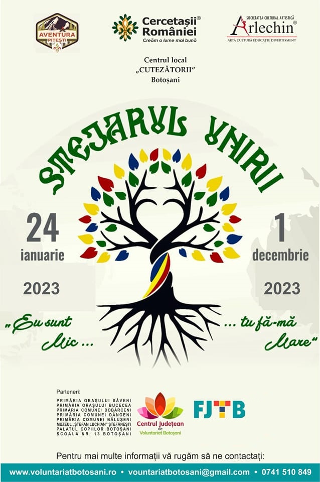 Principalii parteneri ai proiectului: Organizația națională ,,Cercetașii României”, Fundația Județeană pentru Tineret Botoșani, Palatul Copiilor Botoșani, Asociația „Car-Pates”, Asociația ,,Arlechin” și Centrul Județean de Voluntariat Botoșani. Informații suplimentare: www.voluntariatbotosani.ro / www.arlechinromania.ro