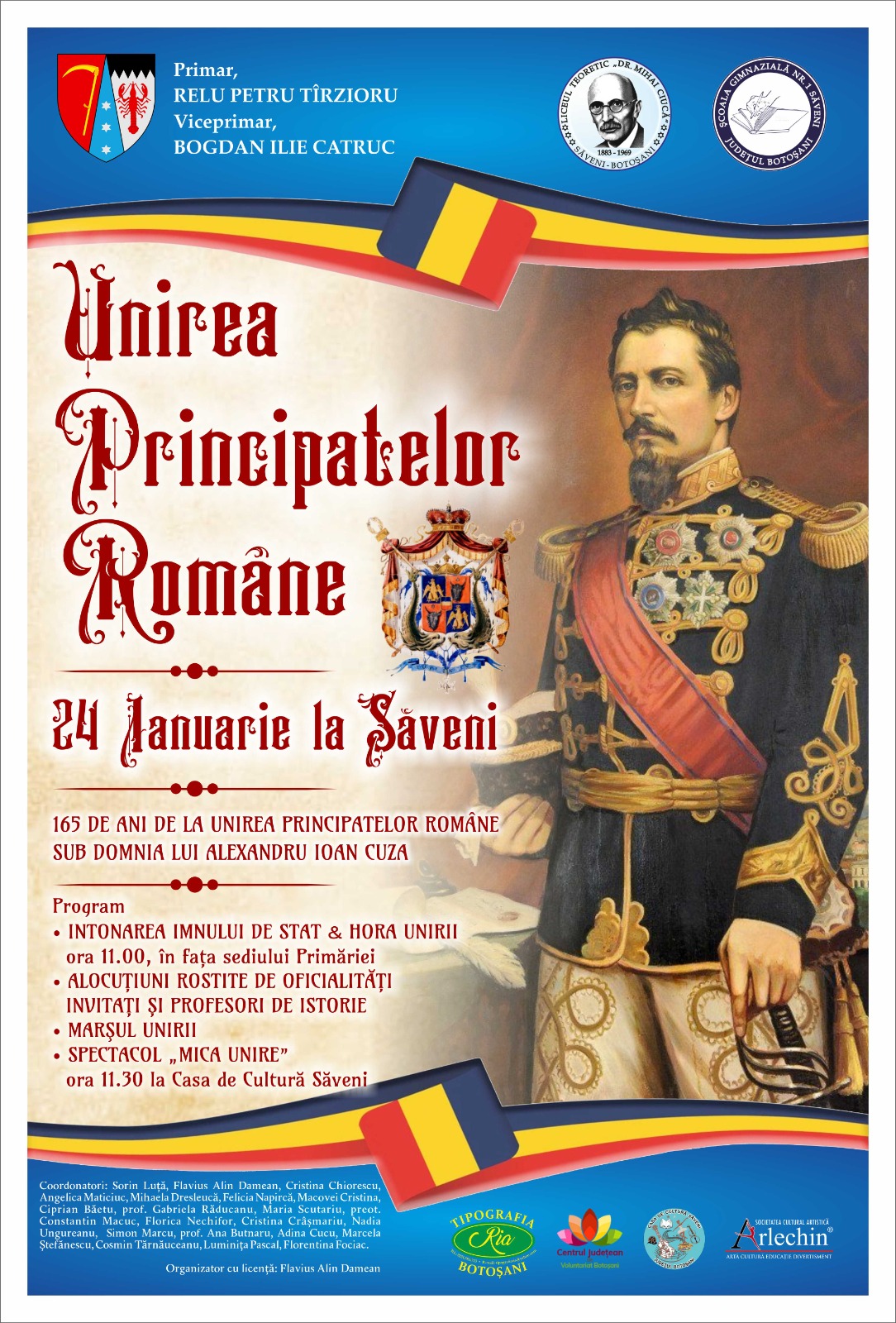Orașul Săveni va sărbătoriși rememora în data de 24 ianuarie, Unirea Principatelor Române din 1859, Mica Unire înfăptuită de domnitorul Alexandru Ioan Cuza!