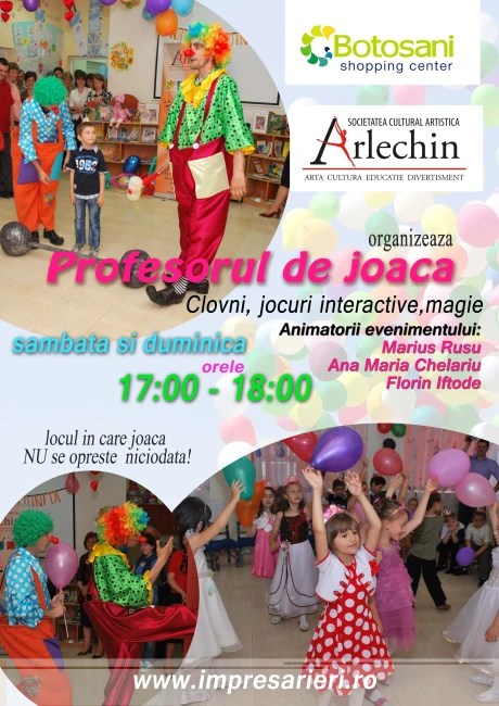 Profesorul de joacă vă invită la Clubul de arte Arlechin de la Casa Tineretului şi Botoşani Shopping Center!