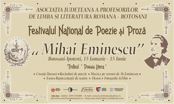 FESTIVALUL NATIONAL DE POEZIE ŞI PROZĂ “MIHAI EMINESCU” editia a II-a, Ipoteşti – Botoşani, 15 ianuarie – 15 iunie 2013 … Mai mult