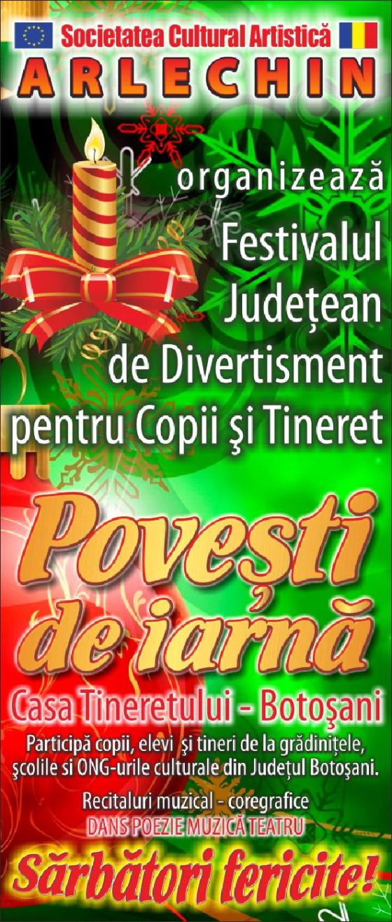 Festivalul Judetean de Divertisment pentru Copii si Tineret POVESTI DE IARNA editia a IX a „Christmas Party” Botoşani, 14 … Mai mult